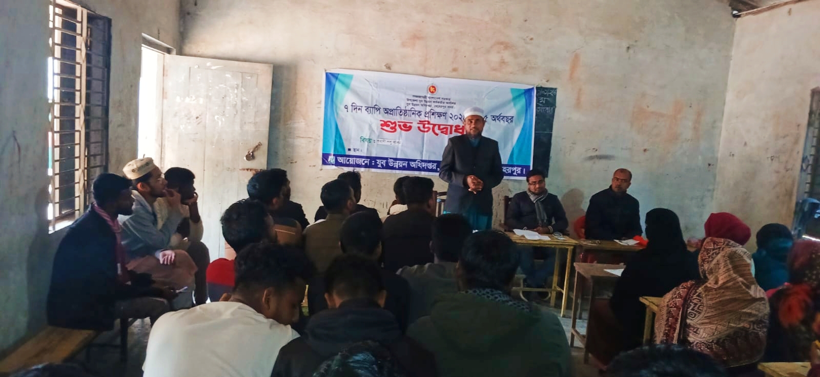 যুব উন্নয়ন অধিদপ্তর, মেহেরপুর সদর কর্তৃক আয়োজিত ৭ দিন ব্যাপী গবাদী পশুপালন বিষয়ক ভ্রাম্যমাণ প্রশিক্ষণের উদবোধন করা হয়। পিরোজপুর দাখিল মাদ্রাসা প্রাঙ্গনের এই আয়োজনে ১৮-৩৫ বছর বয়সী যুবরা অংশগ্রহণ করেন। অনুষ্ঠানে প্রধান অতিথি হিসেবে উপস্থিত ছিলেন জনাব মোঃ মাহফুজুর রহমান, কোর্স কো-অর্ডিনেটর ও সহকারী উপজেলা যুব উন্নয়ন কর্মকর্তা, মেহেরপুর সদর, মেহেরপুর। অন্যান্যের মধ্যে আরো উপস্থিত ছিলেন জনাব মোঃ আঃ ছালাম, শিক্ষক, পিরোজপুর দাখিল মাদ্রাসা, জনাব মোঃ আব্দুল হালিম, প্রশিক্ষক। বক্তারা প্রশিক্ষণ নিয়ে দেশের অগ্রগতিতে যুবদের ভূমিকা নিয়ে আলোচনা করেন।