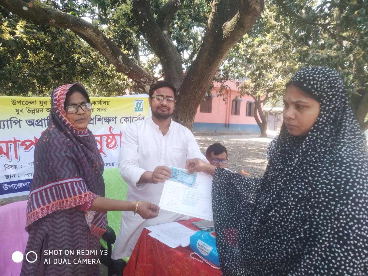 যুব উন্নয়ন অধিদপ্তর, মেহেরপুর সদর, মেহেরপুর কর্তৃক আয়োজিত ৭ দিন ব্যাপী নকশি কাঁথা বিষয়ক ভ্রাম্যমান প্রশিক্ষণ কোর্সের সমাপনী অনুষ্ঠান মেহেরপুর সদর উপজেলার পৌর এলাকার চক্রপাড়ায় কনক মহিলা সংস্থার কার্যালয়ে অনুষ্ঠিত হয়। অনুষ্ঠানে প্রধান অতিথী হিসেবে উপস্থিত ছিলেন উক্ত কোর্সের কোর্স কো-অর্ডিনেটর ও সহকারী উপজেলা যুব উন্নয়ন কর্মকর্তা জনাব মোঃ মাহফুজুর রহমান এবং অফিস সহকারী কাম কম্পিউটার অপারেটর জনাব মোঃ ইয়ারুল ইসলাম। অনুষ্ঠানে প্রশিক্ষানার্থীদের মধ্যে ভাতা ও সার্টিফিকেট তুলে দেয়া হয়।